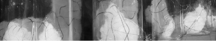 I think of the forms I have created as specimens of life forms inspired by nature and contained as if preserved in shadow boxes and glass jars. My inspiration comes from the complex patterns found in nature such as the delicate structure of the DNA double helix or the intertwining human vascular system.
